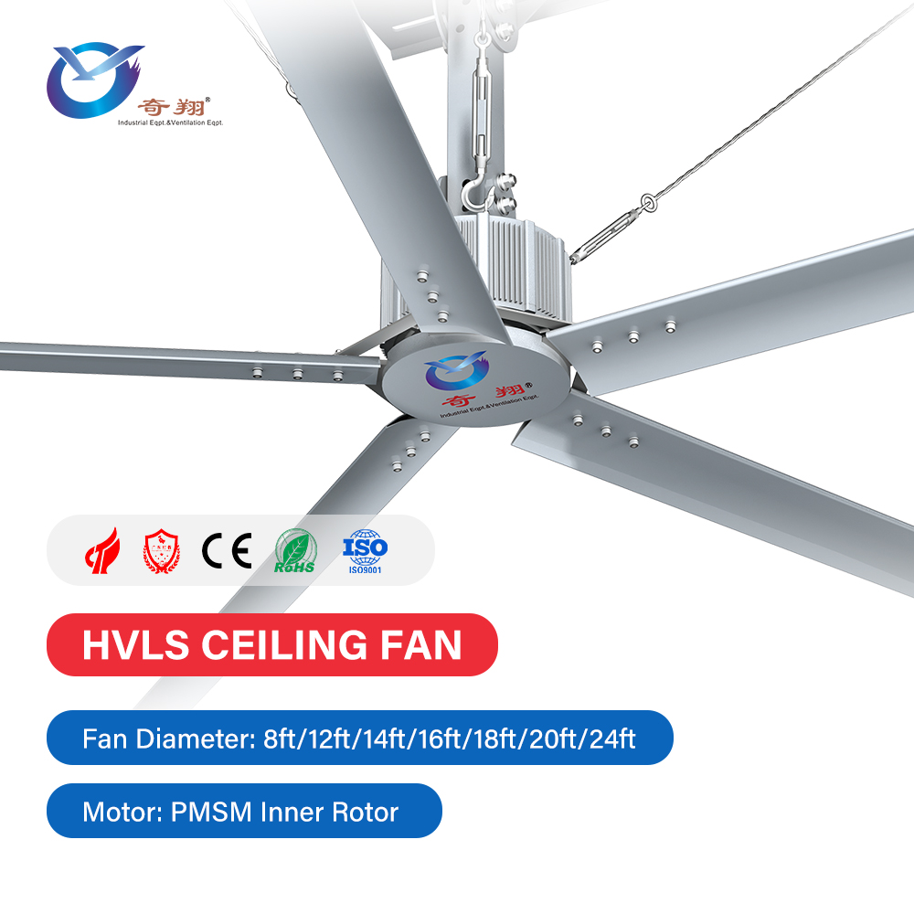 24ft Low Price Hvls Fans Big Ceiling Fans For Warehouse Gearless direct drive hvls Industrial Ceiling Fans specially dedicated for large scale space. The streamlined fan blade adopts aerodynamics principles and advanced process , the diameter is from 2.5-7.2 meters, with coverage 14860m3/min. Only using the efficient servo direct drive motor, it can creat plenty of comfortable natural wind. More