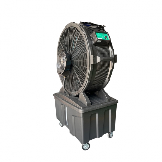 Large industrial mist fans is a new type of floor industrial fan, around 0.9 meters diameter, can moved to anywhere you need. It also can adjust to different direction, applicable to any heavy industrial environment.