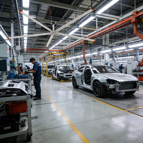 Permanent Magnet Gearless Direct Drive PMSSM HVLS ceiling fan will be the trend of HVLS ceiling fan soon. It can be widely used in large industrial plants, logistics warehouses, shopping malls, gymnasiums, leisure clubs, school halls, large restaurants, stadiums, villas, government hall, automobile (train) stations, livestock farms, casting industry, metallurgical industry, etc.