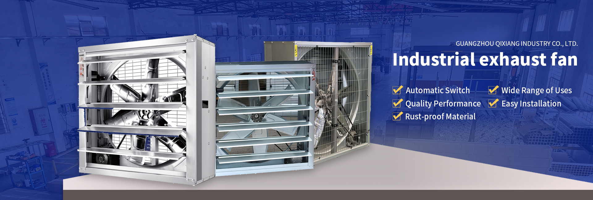 The exhaust fan utilizes the principle of air convection and negative pressure ventilation for cooling. It is a machine that naturally draws in fresh air from the opposite direction of the installation location - such as a door or window - and rapidly forces the stuffy indoor air out of the building. It can improve any poor ventilation issues and achieve a cooling and ventilation effect of 90% to 97%.
