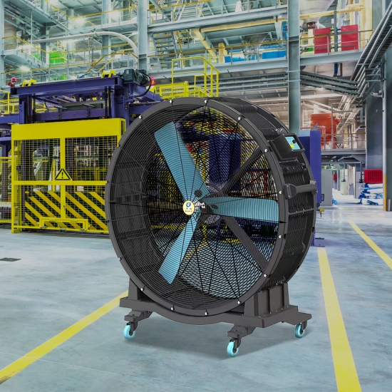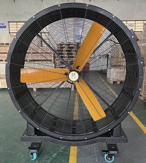 Large industrial mobile fans is a new type of floor industrial fan, around 1m/1.25m/1.5m/2 meters diameter, can moved to anywhere you need. It also can adjust to different direction, applicable to any heavy industrial environment.